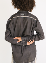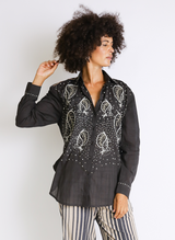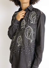 The perfect button-down does exist. Easy to dress up or down, this unisex shirt was designed to wear all day, every day. Structured yet relaxed, it features a collared neckline, edge stitching, and a front patch pocket. In a chic black colorway, handloom woven from naturally dyed organic cotton and hand-embroidered with naturally dyed yarn.