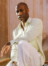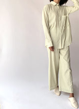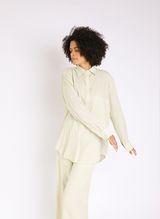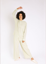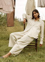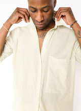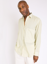 The perfect button-down does exist. Easy to dress up or down, this unisex shirt was designed to wear all day, everyday. Structured yet relaxed, it features a collared neckline, edge stitching, and a front patch pocket. In our sweet matcha stripe, handloom woven from naturally dyed cotton.