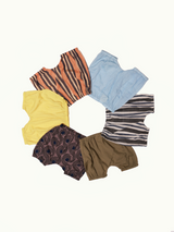 Tapping into Seek’s inner child, we partnered with Yasuko Yamamoto, a children's wear designer and founder of SATO NYC, and used leftover fabric from production to create baby bloomers for infants 0-6 months and 6-12 months! You may notice some of these prints in our current and prior collections (see below), so if you love matching with your baby–or know someone who does–our baby bloomers make adorably standout outfits and thoughtful gifts.