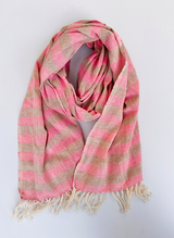 Our go-to scarf, perfect for local and foreign jaunts and journeys. Cut from the softest, lightest and 100% hand spun cotton, you won't want to take yours off. This scarf was handloom woven by our partners at Women Weave in Maheshwar, Madhya Pradesh. Women Weave is devoted to preserving the craft of handloom weaving by providing training and meaningful work for women across India.